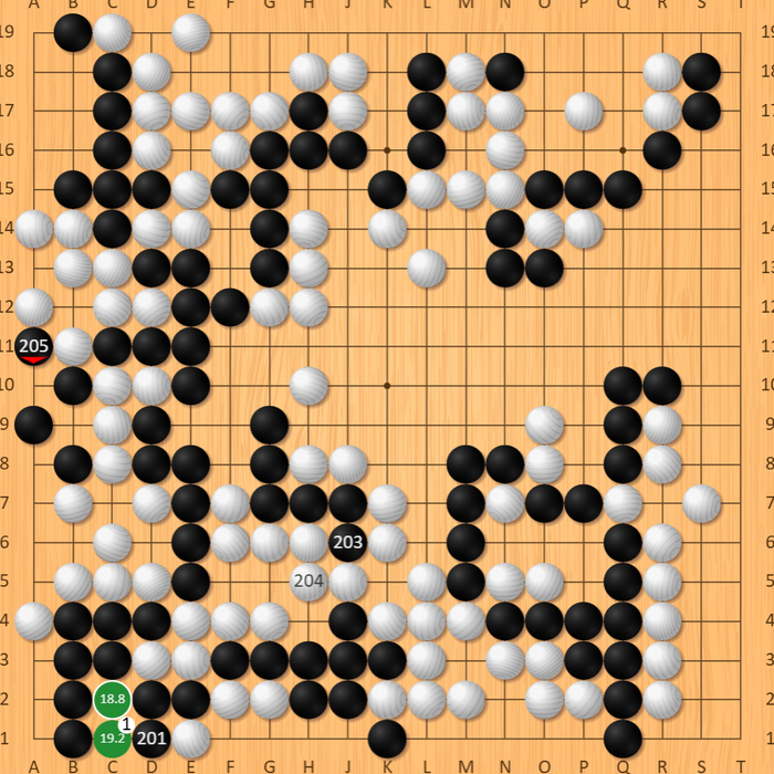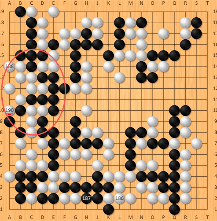 关键的188手,申旻埈走出恶手,给了黑棋左边做活的机会。这一严重失误让优势瞬间崩塌,一力辽则顺势逆转对局,领先4目多,向着胜利前进!而申旻埈的大勺或是本局最大的胜负点,毕竟读秒中一力辽的状态更为稳定!
