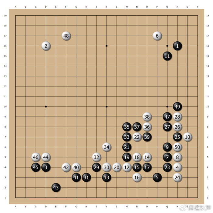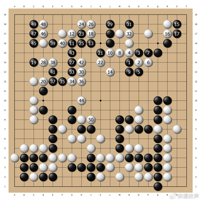 这是申旻埈没注意到的一手,大惊之下,白38相当于自停一手,“勺宗”的勺子不负众望呈现于棋盘之上。