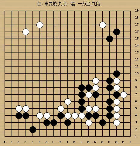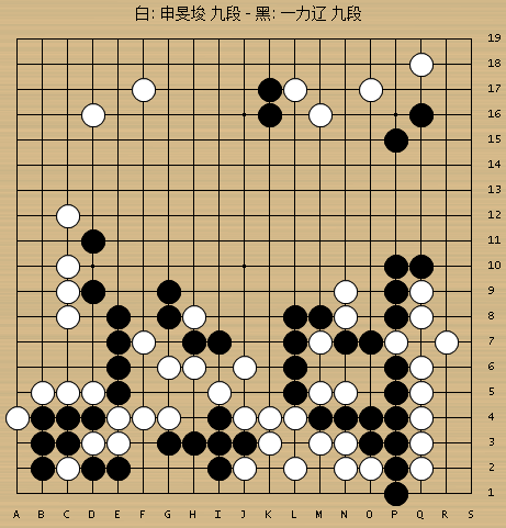 申旻埈坚持了几十手,盘面10目左右的差距无法缩小。