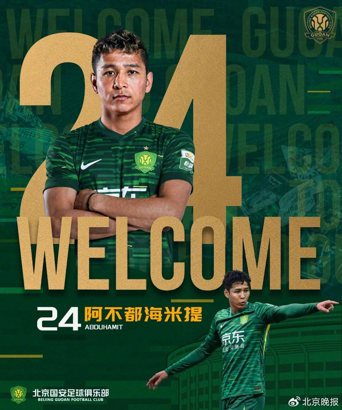 阿不都海米提·阿不都格尼正式加盟北京国安足球俱乐部,他将身披24号球衣,代表北京国安出战本赛季中超联赛、亚冠联赛、足协杯等各项赛事。