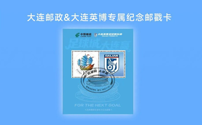 第二,大连邮政&大连英博专属纪念邮戳卡,这是大连邮政与大连英博足球俱乐部的官方联名周边产品。
