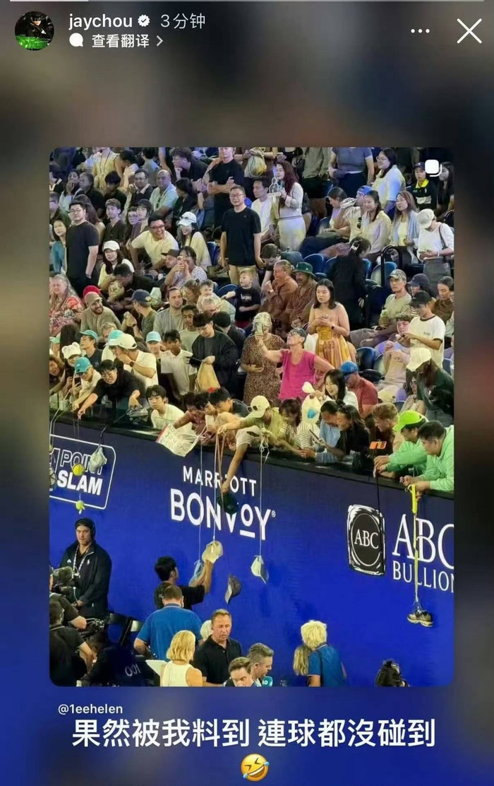 跨界参赛者同样引人注目,华语流行天王周杰伦作为外卡选手参赛,他的首轮对手是维多利亚州业余冠军彼得·约维奇。周杰伦赛前就在社交媒体上幽默表示:“可能连球都碰不到就出局。”这一预言最终竟然成真,他在第一轮被对手直接Ace终结,球都没碰到就结束了本届一球致胜比赛的旅程。赛后,他幽默地表示:“果然被我料到,我连球都没碰到。我能做的只有在场边给大家签名了。”