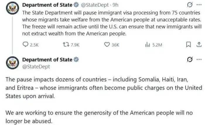 2026年1月15日,外媒报道,美国于当地时间14日称,将暂停75个国家和地区的签证申请。据了解,这75个国家和地区包括阿尔巴尼亚、阿尔及利亚、巴西。哥伦比亚、科特迪瓦、格鲁吉亚、加纳、伊朗、约旦等。有足球圈的好事者简单统计了下,足有13支世界杯参赛球队在列,因此再度传出了“国足将获得递补机会”的说法。那么真的是这么回事吗?