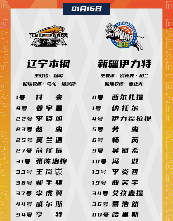 今晚(北京时间1月16日晚)19时35分,2025-2026赛季CBA常规赛第15轮的一场对决在位于沈阳的辽宁体育馆拉开战幕,老牌球队辽篮继续坐镇主场,迎战曾硬刚中国篮球掌舵人姚明(晚池注:因为在任期间中国男篮连续遭遇耻辱性失利,已经下课)的昔日CBA头号土豪新疆男篮。