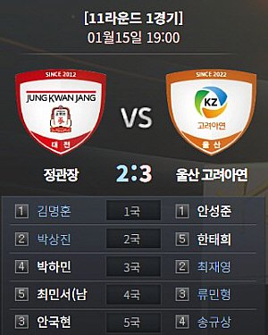 18:00 2026年韩国KB围棋联赛第11轮