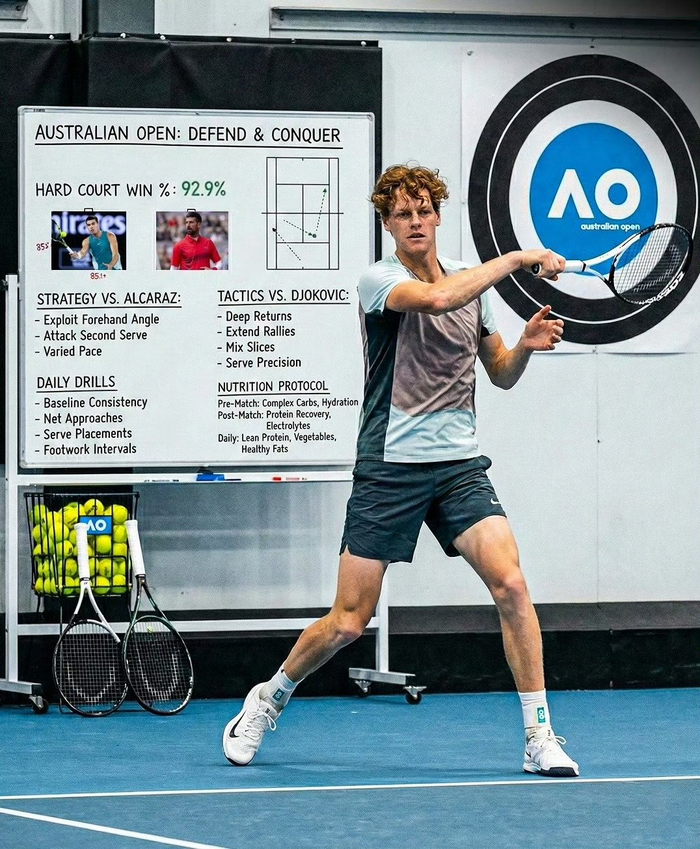 就在辛纳于内心战场完成蜕变的同时,外部的竞争格局正以前所未有的清晰度聚焦于他与阿尔卡拉斯身上。今年的澳网,戏剧性地成为两人命运交响曲中的强音段落。阿尔卡拉斯,这位已手握法网、温网和美网桂冠的天才少年,若能在墨尔本折桂,便将实现全满贯的旷世伟业,以火箭般的速度跻身传奇殿堂。而辛纳,若能成功卫冕,则将铸就澳网三连冠的现代霸权,不仅宣告自己仍是这片领地的绝对王者,更将是对过去一年所有质疑最铿锵有力的回应。