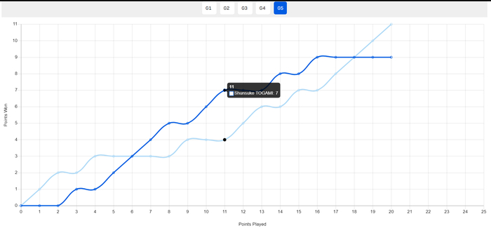 第四局黄友政一鼓作气将比赛拖入抢五大战,决胜局两人开场3-3,可随后户上隼辅7-3领先到4分,决胜局黄友政已经陷入绝境,但20岁的小将没有放弃,他稳抓稳打一路追到9-9平,此时户上隼辅的心态已经崩溃,黄友政拿下关键分实现超级逆转。
