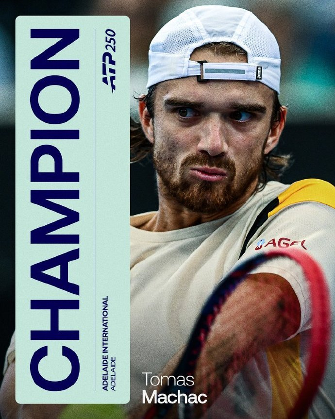 我们再来关注昨天ATP250阿德莱德站的单打冠军争夺战。在北京时间昨天下午结束的这场较量中,8号种子、捷克人马哈奇以6-4 6-7(2) 6-2击败法国名将恩贝尔,继2025的阿卡普尔科站之后,斩获职业生涯巡回赛第2冠。恭喜他!