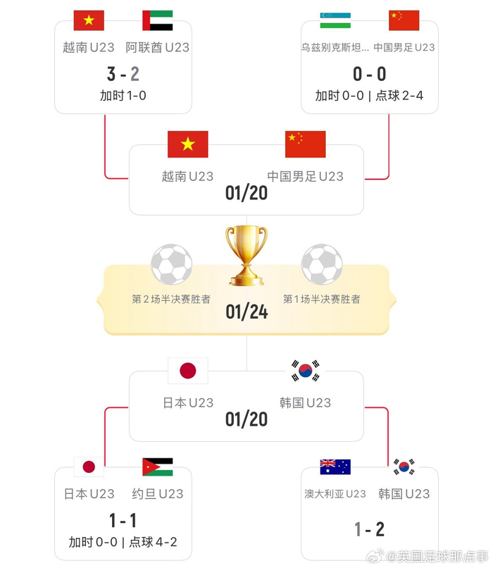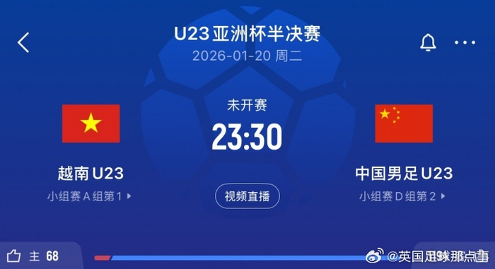 越南U23与中国U23的半决赛将于1月20日晚10点30分开赛。凭借更优异的体能状态和高昂士气,球迷们完全有理由相信‘金星战士’将赢得胜利。”#U23国足首进亚洲杯4强#