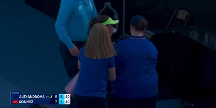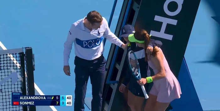 正当郑瑞创造历史的同时,22号球场发生了一幕温暖人心的场景。土耳其少女森梅兹在与亚历山德洛娃的比赛中,注意到主裁椅旁一个球童摇摇晃晃,随后仰面重重摔倒。