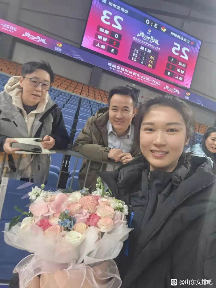 值得一提的是王梦洁虽然没有在12人名单中,但是出现在山东女排队伍中,现场球迷都晒图了。大家也在猜测:等到淘汰赛的时候,王梦洁回归山东女排,后者将如虎添翼,甚至有了和上海、江苏女排争冠的实力!