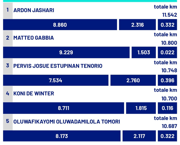 米兰1比0胜莱切,亚沙里跑动11.542公里居全队第一 Eternity-_ 01.2001:58 关注 【跑动数据📊】 #意甲联赛# 🔴⚫️ 米兰主场1:0莱切队,亚沙里🇨🇭本场比赛跑动距离为11.542公里,位居米兰全队第1️⃣。🏃🏻♂️#sempremilan#