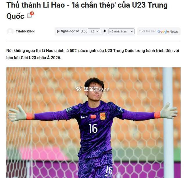 第二个,越南媒体发布多篇专题报道,专门提到了李昊和王钰栋,在他们眼里,中国队只有这2个人值得关注了。越南媒体说李昊是中国的钢铁盾牌、移动长城和点球之神,他将是越南队在这场生死战中最难缠的“障碍”!而进攻端只要防死王钰栋就行了,说他是中国亚马尔,身价几乎是越南U23全队身价的一半,越南教练要重点盯防王钰栋。