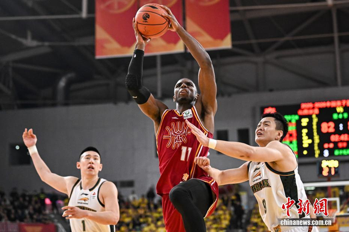 1月20日,山西队球员迪亚洛(红衣)在比赛中上篮。当日,在太原进行的2025-2026赛季中国男子篮球职业联赛(CBA)常规赛第17轮比赛中,山西汾酒队主场以90比86战胜辽宁本钢队。中新社记者 韦亮 摄