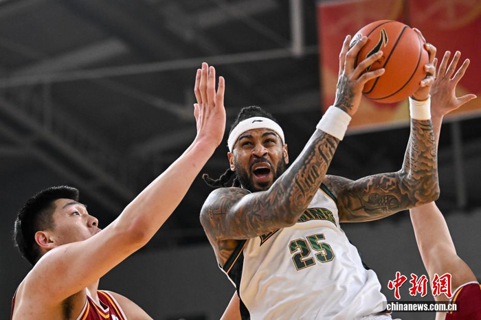 1月20日,辽宁队球员莫兰德(白衣)在比赛中上篮。当日,在太原进行的2025-2026赛季中国男子篮球职业联赛(CBA)常规赛第17轮比赛中,山西汾酒队主场以90比86战胜辽宁本钢队。中新社记者 韦亮 摄