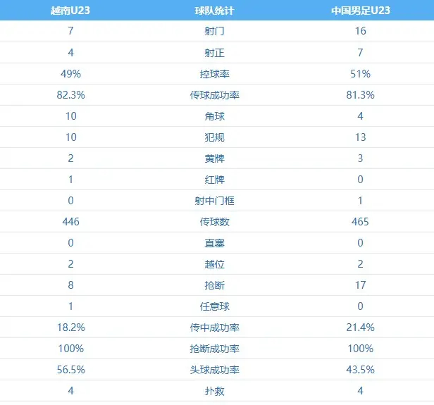 全场数据足以印证这份碾压的含金量:中国队控球率51%,16次射门7次射正,反观越南队仅4次射门1次射正,攻防两端的差距一目了然。这不是势均力敌的博弈,而是全方位的实力压制,每一次传导、每一次冲击,都藏着千锤百炼的功底。