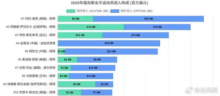 近日,《福布斯》公布2025年全球女运动员收入榜单,中国网球选手郑钦文以2260万美元的年收入位列第五,与排名第四的谷爱凌携手跻身前五,彰显了中国新生代体育明星的国际商业影响力。