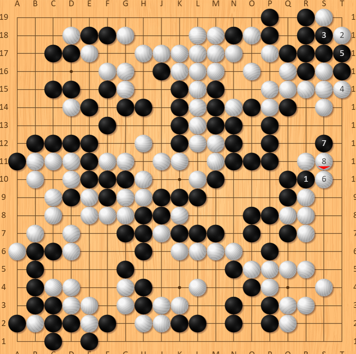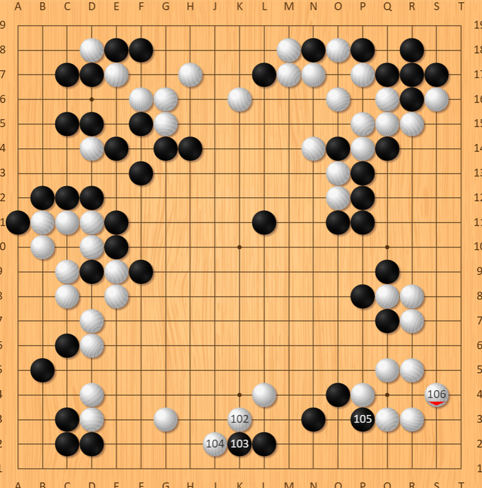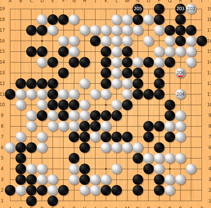局势反复之际,朴廷桓在右边落子出现恶手,柯洁却未能把握战机,在上边边线应对失当,反而给了白棋逆转契机。