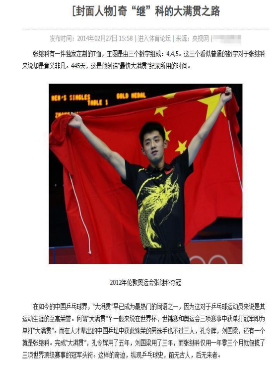 2012年,时年24岁的张继科就实现了大满贯。