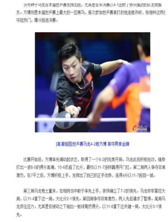 可马龙依旧能多次在巅峰对决赢球。