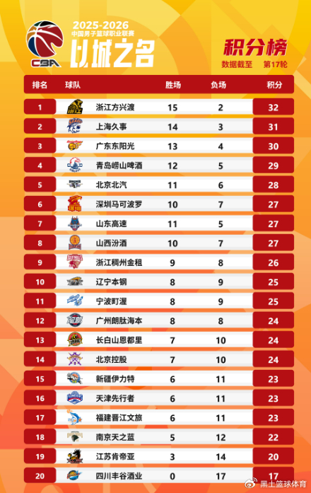 附:CBA积分榜最新排名