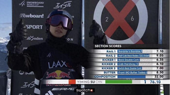 ▲山西选手苏翊鸣获单板滑雪世界杯莱克斯站铜牌