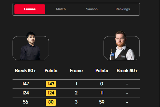 轰满分147分,147-0,赵心童退赛,张安达、雷佩凡冲