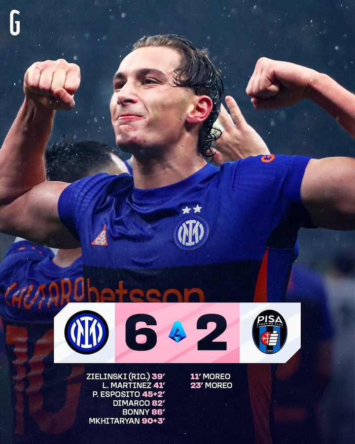 #意甲联赛# 由吉拉迪诺🇮🇹教练执教的比萨客场2:6负于国际米兰队。