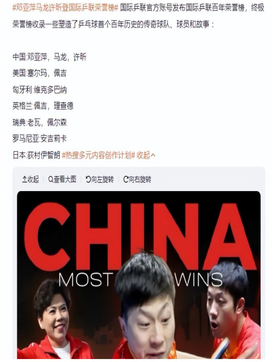近日,国际乒联发布了“百年荣誉榜”。