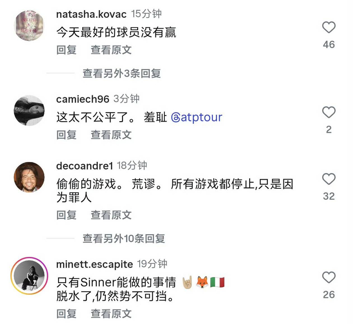 另一位评论则指向了赛事经济的潜在考量:“澳网是为了避免辛纳被淘汰,从而影响自己的票房和收视率吧?一位顶级球星在第二周出局对主办方来说是商业噩梦。”