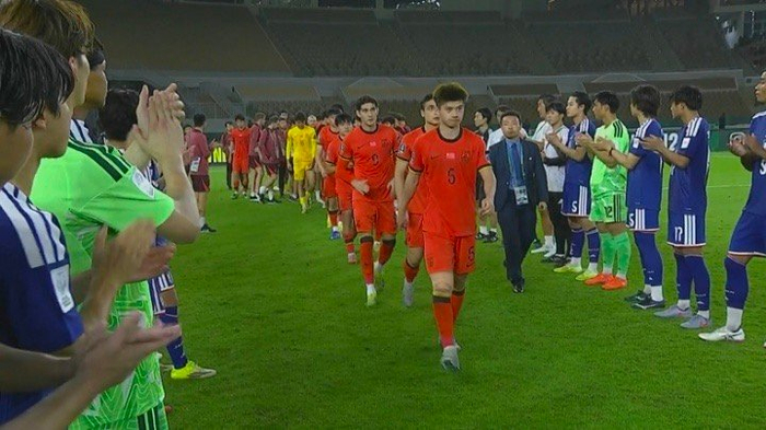 U23亚洲杯决赛,中国男足U23以0-4负于日本U23,无缘队史首个U23亚洲杯冠军。而在赛后颁奖典礼的时候,日本U23为U23国足列队鼓掌,这样的阵仗全队终于能享受到了。
