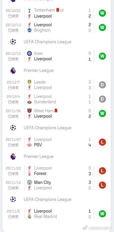 • 利物浦 2-1 埃弗顿 — 2025年9月20日