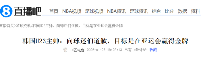 韩国队在本届U23亚洲杯中表现一般般,仅仅获得第四名,随后球队回到国内,主教练李敏松也向球迷表达了歉意,并表示将在9月的亚运会上以更好的面貌出现,“我们的目标是在亚运会上赢得金牌。我们将继续进步和成长。”