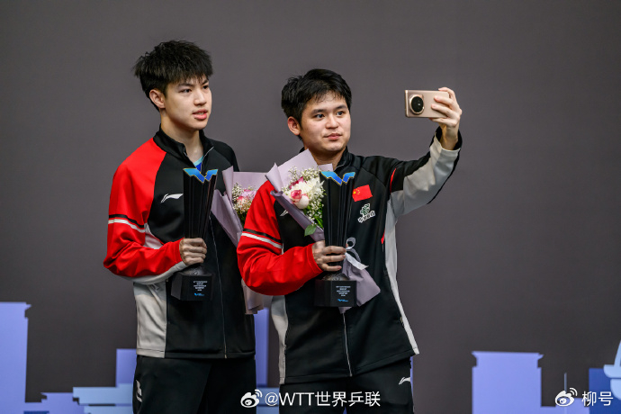 另一场半决赛,杜达/弗朗西斯卡直落三局以3-0的比分,轻松战胜郭勇/冯耀恩组合晋级决赛,三局比分为:11-7,11-8、14-12。来到男双冠军战,林诗栋/黄友政持续发力,他们以3-1的比分战胜杜达/弗朗西斯卡夺得冠军。祝贺温瑞博、林诗栋/黄友政!中国男乒!
