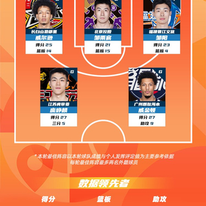 数据领先者方面:@浙江广厦篮球俱乐部 球员布朗以单场38分的数据领衔得分榜;