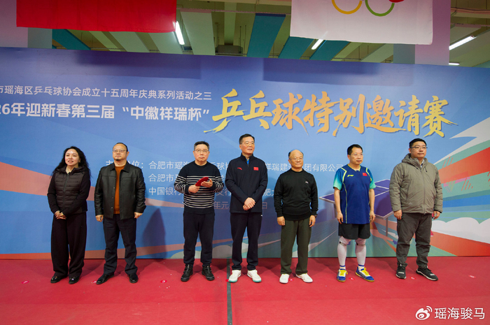 2026年1月25日,2026年迎新春第三届“中徽祥瑞杯”乒乓球特别邀请赛在合肥市梦马乒乓球训练中心圆满落幕。本次赛事由合肥市瑶海区乒乓球协会、中徽祥瑞建设集团有限公司主办,合肥市马岗实验小学教育集团协办、中国银行合肥瑶海支行、古井合肥大区支持单位。汇聚了来自全市各地的50队乒乓球爱好者同台竞技,以球会友共贺新春,用拼搏身影诠释“更快、更高、更强——更团结”的体育精神。
