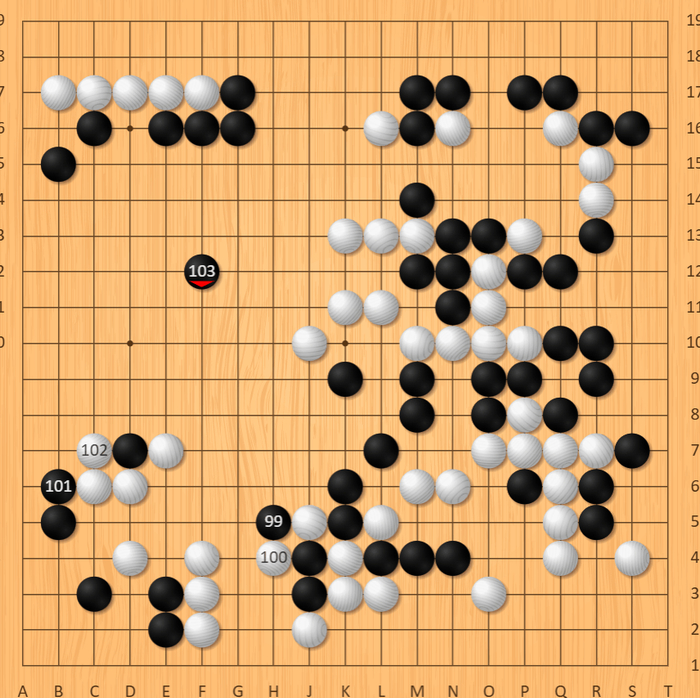 此役双方行棋均暗藏漏洞,白棋虽顽强抵抗却损失惨重,仅存一线逆转希望。遗憾的是白棋未能把握关键,放弃布局中腹势力的机会,反而持续与黑棋纠缠。当丁浩下出第103手左边打入,且提前稳固中下地盘后,白棋翻盘希望彻底破灭,短暂交手后便无奈认负,丁浩以百手速胜书写精彩对局。