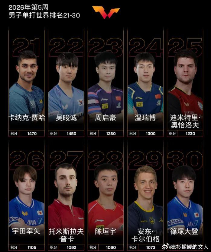 但是,在其余名次的排名中,有些球员的名次变化还是蛮大的。其中一个比较有代表性的便是国乒小将年仅18岁的温瑞博。在上一周的男单世界排名上,温瑞博的排名是第31位;而在本周的男单世界排名上,温瑞博的排名是第24位。前后对比之下,温瑞博的上升了7位。对了,第24位刷新了温瑞博的个人职业生涯排名新高。