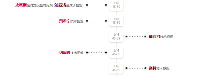 经过录像回看,迪亚洛,贺希宁,约翰逊,奈特各领到一次技术犯规。