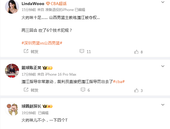 火药味太浓!深圳vs山西2分钟内吹出7个T 潘江被驱离场