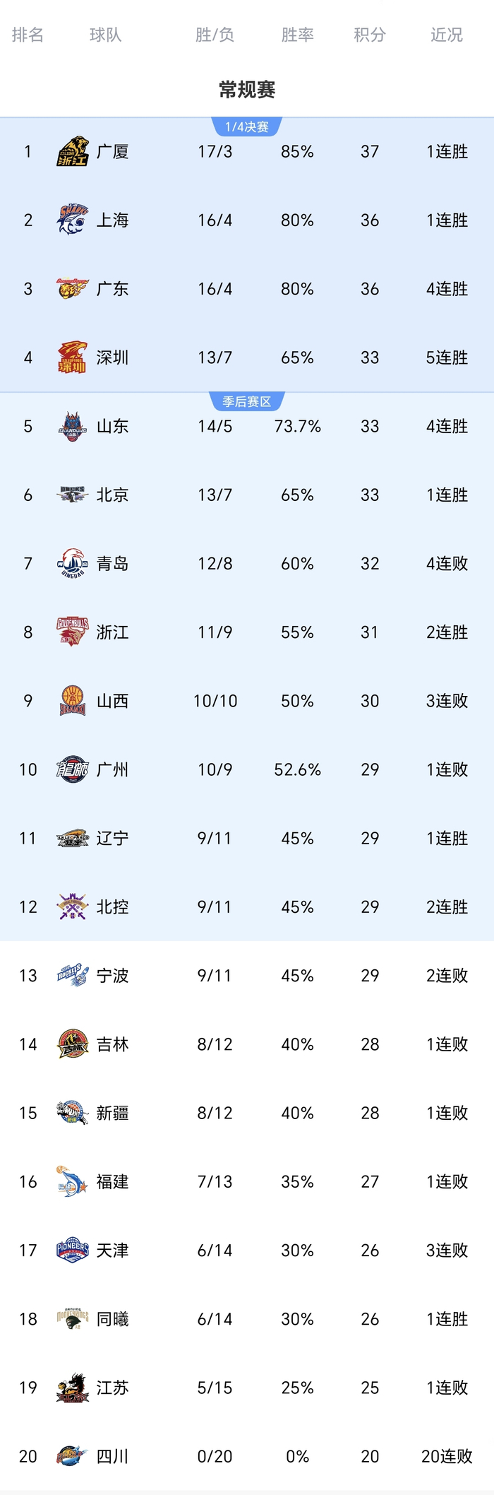 CBA一场5场惨案:前总冠军输52分!最新排名:榜首易主,广东第3