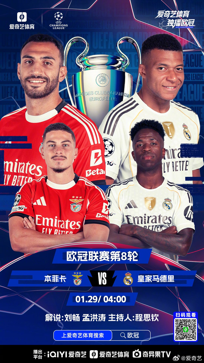 #上爱奇艺体育看欧冠# 周四凌晨4点,25/26欧冠联赛阶段最后一轮,18场比赛同开。皇马客战本菲卡,巴黎迎战纽卡,多特国米强强对话,巴萨曼城冲击前8。好戏连台,目不暇接,激情欧冠,只在爱奇艺体育。#爱奇艺体育全媒体独播欧冠#