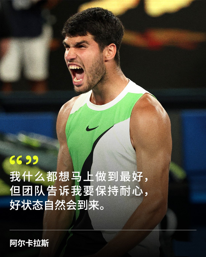 “今年我真的可以做出改变。我愿意用三个大满贯的代价换一个,那就是澳网冠军。” 阿尔卡拉斯在晋级16强之后对科佩电台的记者说道。