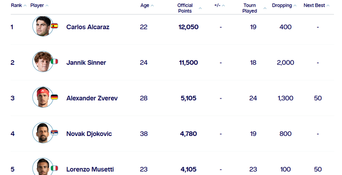 也就是说,领跑网坛的辛卡二人与其他球员之间,已经出现了明显的断层。其他球员并非在贴身追赶辛卡二人,而是被拉开了明显的差距。