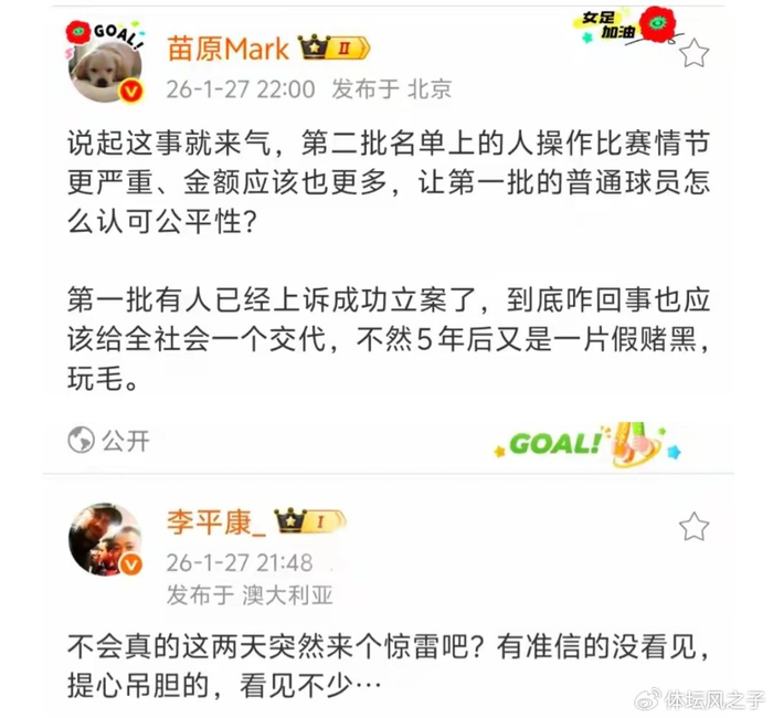 几乎与此同时,另一位名记李平康也在社交媒体上表达了担忧。他称这两天总感觉会有“惊雷”炸响,虽没有确切消息,但这种提心吊胆的氛围在圈内蔓延。从两位名记的含沙射影中不难看出,他们似乎都掌握着关于第二批处罚名单的一些内幕信息。这也让外界纷纷猜测,第二批名单中究竟会涉及哪些球员或俱乐部。