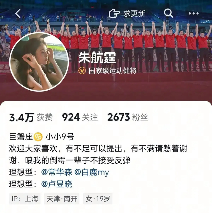 近日,天津女排二传朱航霆在社交媒体上的留言引起了大家关注!原来,她写道:欢迎大家喜欢!有不足可以提出,有不满请憋着,喷我的倒霉一辈子不接受反弹!