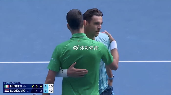 本场比赛是双方生涯第10次交锋,首盘较量中,德约科维奇开局进入状态较快,凭借一次破发和稳健的发球局,迅速建立起2-0的领先优势。但穆塞蒂随后及时调整节奏,凭借精准的落点控制和强势的进攻火力连下四局,成功反超比分。此后双方陷入保发大战,各自稳稳守住自己的发球局,最终穆塞蒂以6-4先下一城,给了十冠王一个下马威。