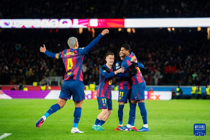 1月28日,巴塞罗那队球员庆祝进球。 当地时间1月28日,在西班牙巴塞罗那举行的2025-2026赛季欧冠联赛阶段第八轮比赛中,西甲巴塞罗那队主场4比1战胜丹超哥本哈根队。 新华社发(胡安·戈萨摄) 1月28日,巴塞罗那队球员亚马尔(后)和队友拉菲尼亚庆祝进球。 当地时间1月28日,在西班牙巴塞罗那举行的2025-2026赛季欧冠联赛阶段第八轮比赛中,西甲巴塞罗那队主场4比1战胜丹超哥本哈根队。 新华社发(胡安·戈萨摄) 1月28日,巴塞罗那队球员拉菲尼亚(前右)和哥本哈根队球员加布里埃尔(前左)在比赛中拼抢。 当地时间1月28日,在西班牙巴塞罗那举行的2025-2026赛季欧冠联赛阶段第八轮比赛中,西甲巴塞罗那队主场4比1战胜丹超哥本哈根队。 新华社发(胡安·戈萨摄) 1月28日,巴塞罗那队球员拉菲尼亚(右)和哥本哈根队球员梅林在比赛中拼抢。 当地时间1月28日,在西班牙巴塞罗那举行的2025-2026赛季欧冠联赛阶段第八轮比赛中,西甲巴塞罗那队主场4比1战胜丹超哥本哈根队。 新华社发(胡安·戈萨摄) 1月28日,巴塞罗那队球员孔德(中)和哥本哈根队球员潘特利斯(左)在比赛中拼抢。 当地时间1月28日,在西班牙巴塞罗那举行的2025-2026赛季欧冠联赛阶段第八轮比赛中,西甲巴塞罗那队主场4比1战胜丹超哥本哈根队。 新华社发(胡安·戈萨摄) 1月28日,巴塞罗那队球员亚马尔(中)在比赛中。 当地时间1月28日,在西班牙巴塞罗那举行的2025-2026赛季欧冠联赛阶段第八轮比赛中,西甲巴塞罗那队主场4比1战胜丹超哥本哈根队。 新华社发(胡安·戈萨摄) 1月28日,巴塞罗那队球员亚马尔(上)在比赛中传球。 当地时间1月28日,在西班牙巴塞罗那举行的2025-2026赛季欧冠联赛阶段第八轮比赛中,西甲巴塞罗那队主场4比1战胜丹超哥本哈根队。 新华社发(胡安·戈萨摄) 1月28日,巴塞罗那队球员卡萨多(左)和哥本哈根队球员加布里埃尔拼抢。 当地时间1月28日,在西班牙巴塞罗那举行的2025-2026赛季欧冠联赛阶段第八轮比赛中,西甲巴塞罗那队主场4比1战胜丹超哥本哈根队。 新华社发(胡安·戈萨摄)