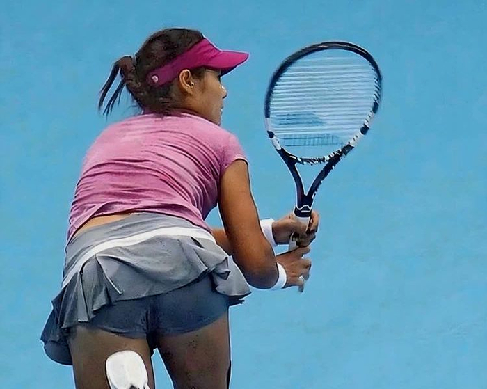 最后来猜一猜认一认。下面这张图片是一位球员在比赛中发球。不作提示,您能认出她是谁吗?