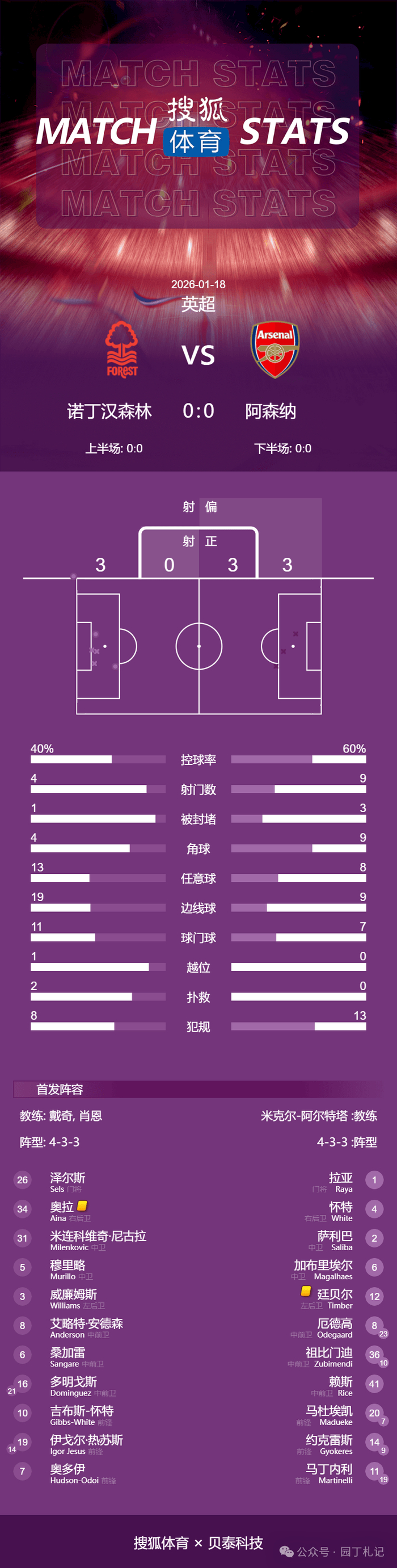最终,阿森纳0-0诺丁汉森林,以7分优势领跑英超。